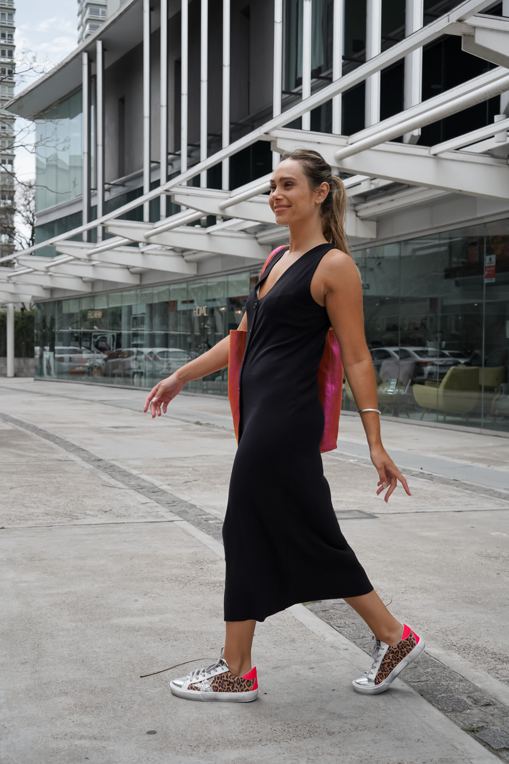 - Zapatilla sin caña, cuero print, delantera en cuero color plata, colita en fucsia , estrella glitter plata , cordones algodón gris, interior cuero, base TR 2,5 cm